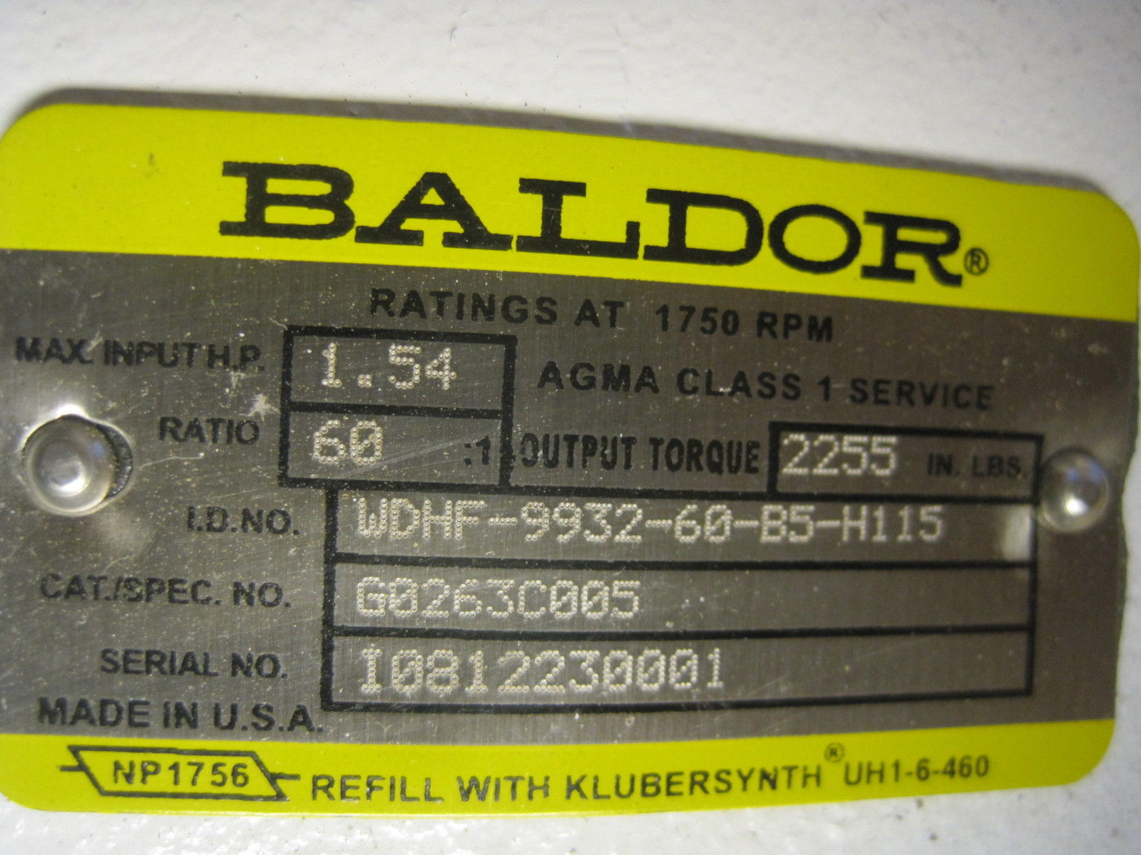 NEW BALDOR WDHF-9932-60-B5-H115 REDUCER BALDOR G0263C005 60:1 RATIO