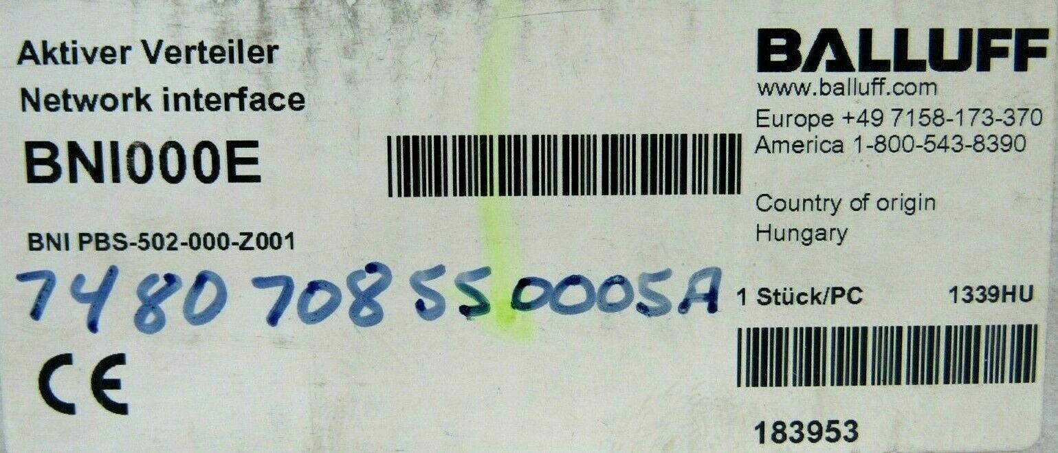 NEW BALLUFF BNI000E ACTIVE SPLITTER BNI-PBS-502-000-Z001$700.00 Only 1 left in stock NEW BALLUFF BNI000E ACTIVE SPLITTER BNI-PBS-502-000-Z001 quantity Add to cart SKU: 352649846287 Category: Other Description Additional information Description NEW BALLUFF BNI000E ACTIVE SPLITTER BNI-PBS-502-000-Z0013080 BB Additional information Weight 2.00 lbs MPN BNI000E Brand BALLUFF We Buy New and Used Surplus Inventory - Sell to Us