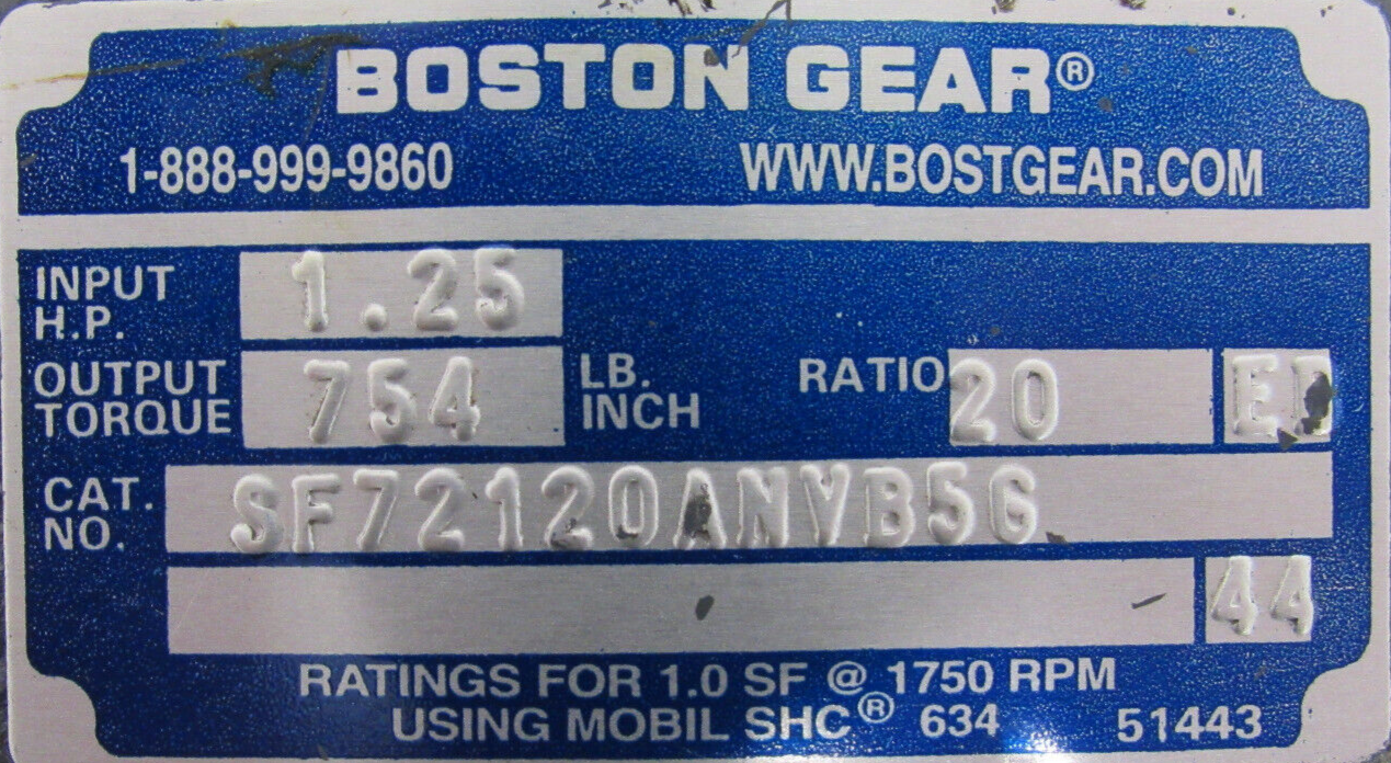 NEW BOSTON GEAR SF72120ANVB5G GEAR REDUCER 20:1NEW, NO BOX
