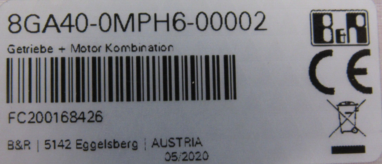 NEW B&R 8GA40-080-003S2PH GEAR MOTOR 80MPH6.300S114-01 8GA40-0MPH6-00002