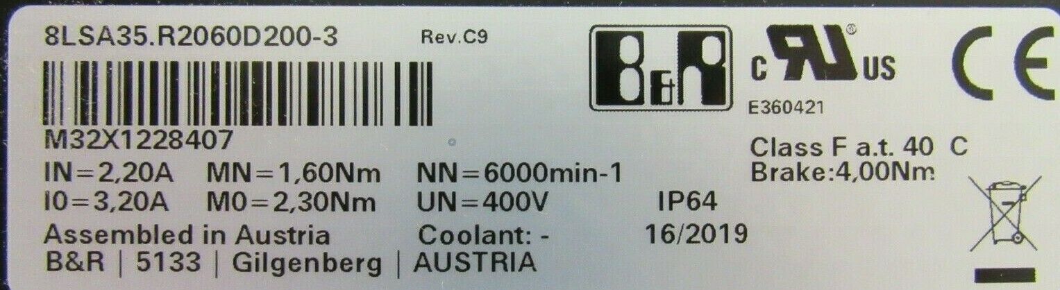 NEW B&R 8LSA35.R2060D200-3 SERVO MOTOR 8LSA35R2060D2003