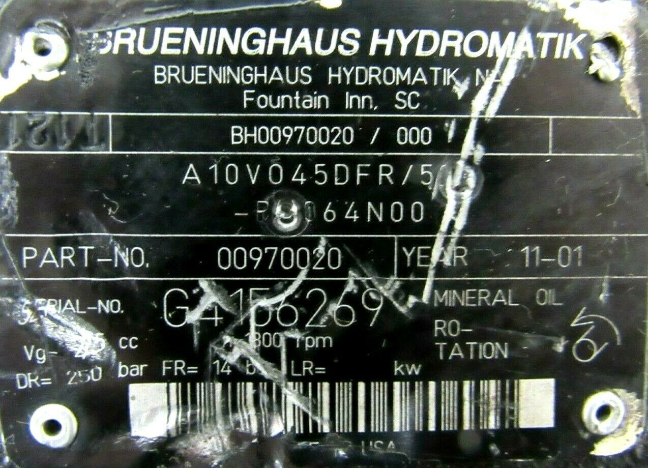 NEW BRUENINGHAUS HYDROMATIK 00970020 HYDRAULIC PUMP A10V045DFR/5NEW, NO BOX