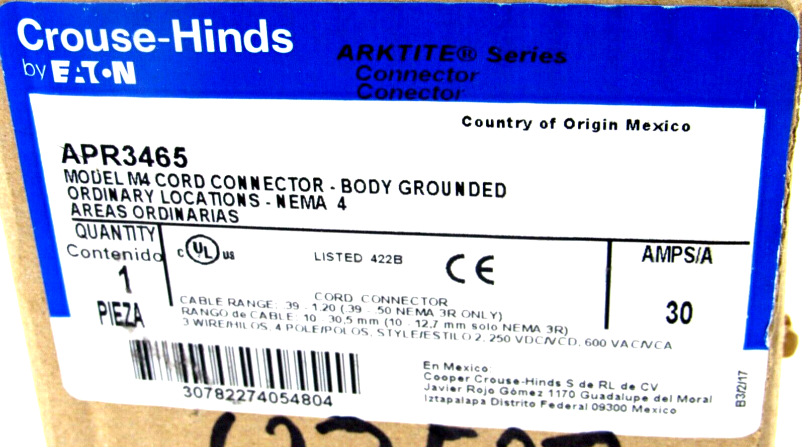 NEW COOPER CROUSE HINDS APR3465 CONNECTOR MODEL M4