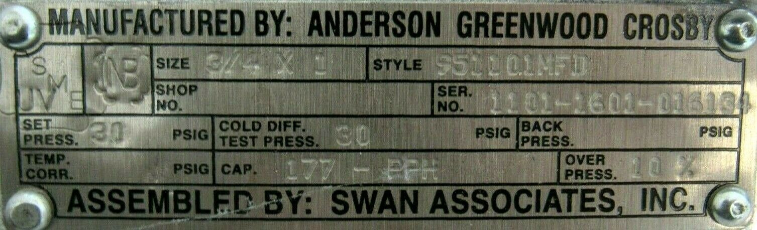 NEW CROSBY 951101MFD PRESSURE RELIEF VALVE 3/4x1 30PSI