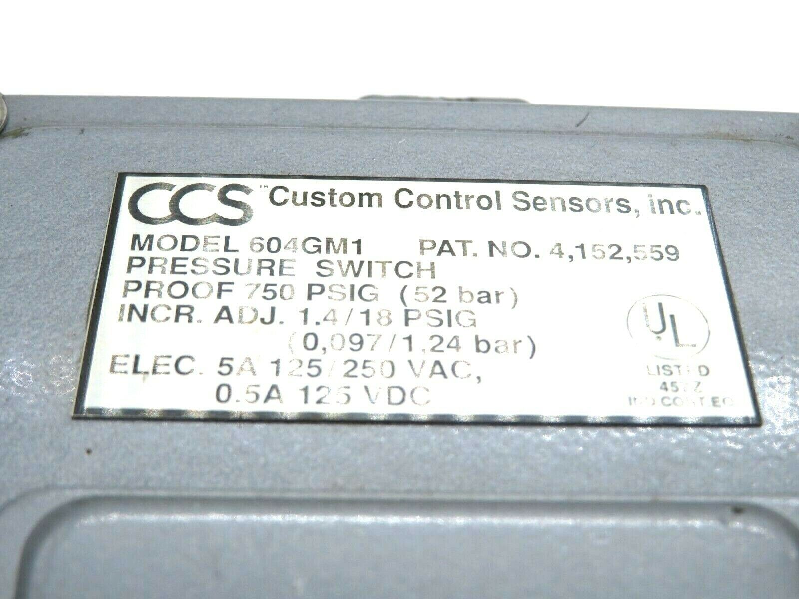 NEW CUSTOM CONTROL SENSORS 604GM1 PRESSURE/TEMPERATURE SWITCHNEW, NO BOX
