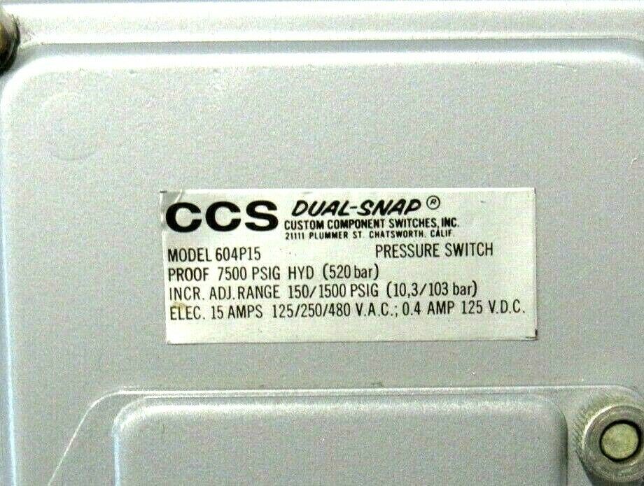 NEW CUSTOM CONTROL SENSORS 604P15 PRESSURE SWITCH$200.00 Out of stock SKU: 194596780167 Category: Other Description Additional information Description NEW CUSTOM CONTROL SENSORS 604P15 PRESSURE SWITCH363 RB Additional information Weight 3.00 lbs MPN 604P15 Brand CUSTOM CONTROL SENSORS We Buy New and Used Surplus Inventory - Sell to Us