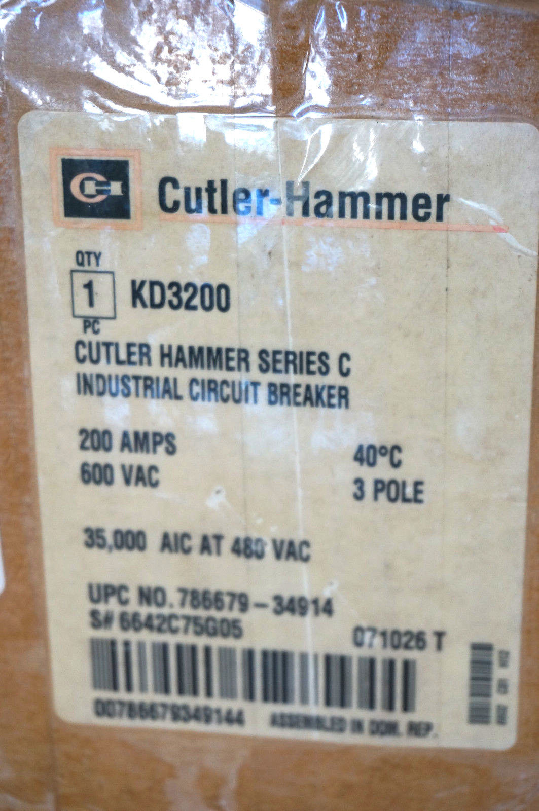NEW CUTLER HAMMER KD3200 CIRCUIT BREAKER SER.C