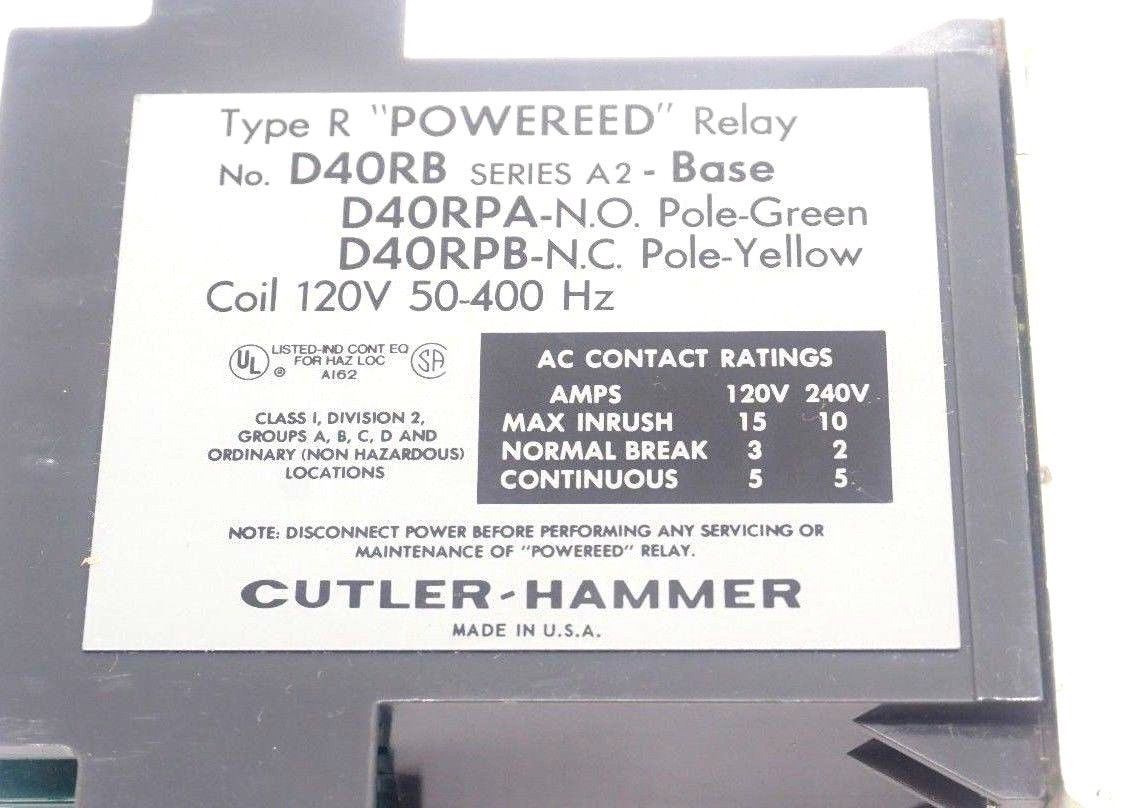 NEW CUTLER-HAMMER RELAY D40RB RELAY SERIES A2$190.00 Out of stock SKU: 173318134558 Category: Other Description Additional information Description NEW CUTLER-HAMMER RELAY D40RBRELAYSERIES A2 *NO BOX* 417/BF Additional information Weight 2.00 lbs Country/Region of Manufacture United States MPN D40RB Brand CUTLER HAMMER We Buy New and Used Surplus Inventory - Sell to Us
