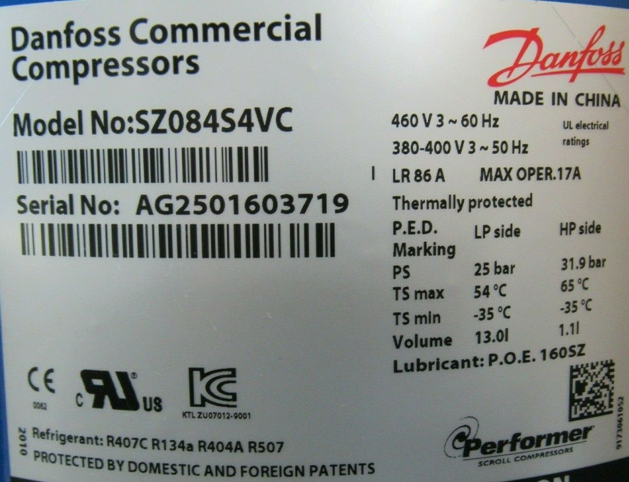 NEW DANFOSS SZ084S4VC SCROLL COMPRESSOR