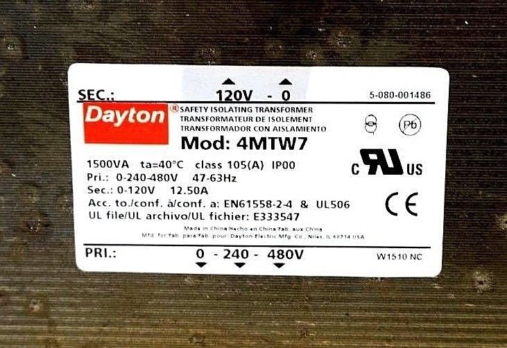 NEW DAYTON 4MTW7 ISOLATING TRANSFORMER$450.00 Only 1 left in stock NEW DAYTON 4MTW7 ISOLATING TRANSFORMER quantity Add to cart SKU: 192726174365 Category: Other Description Additional information Description NEW DAYTON 4MTW7 ISOLATING TRANSFORMER3/98 RB Additional information Weight 35.81 lbs Brand DAYTON MPN 4MTW7 Country/Region of Manufacture China We Buy New and Used Surplus Inventory - Sell to Us