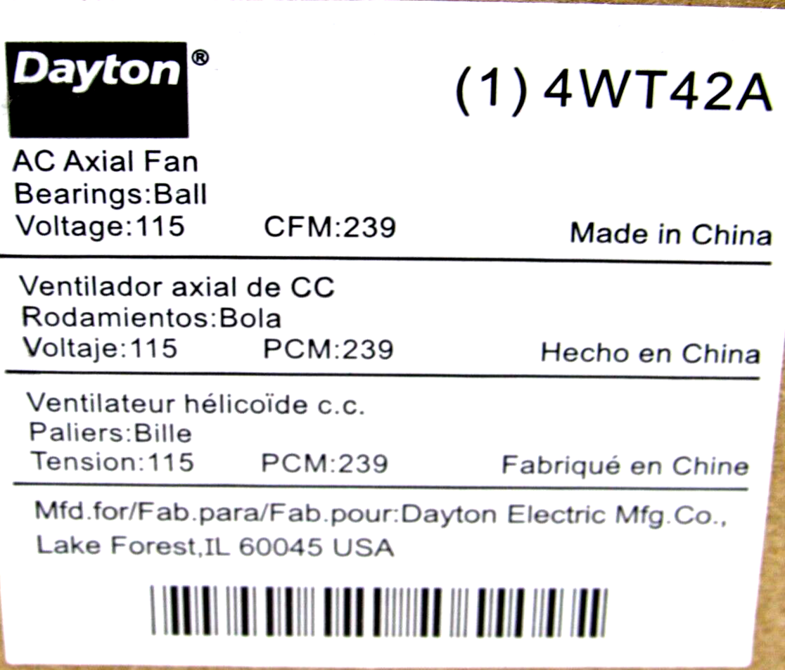 NEW DAYTON 4WT42A AXIAL FAN$70.00 Out of stock SKU: 355486667745 Category: Other Description Additional information Description NEW DAYTON 4WT42A AXIAL FAN1439/BF Additional information Weight 2.00 lbs Brand DAYTON Type Axial Fan MPN 4WT42A Country/Region of Manufacture China We Buy New and Used Surplus Inventory - Sell to Us