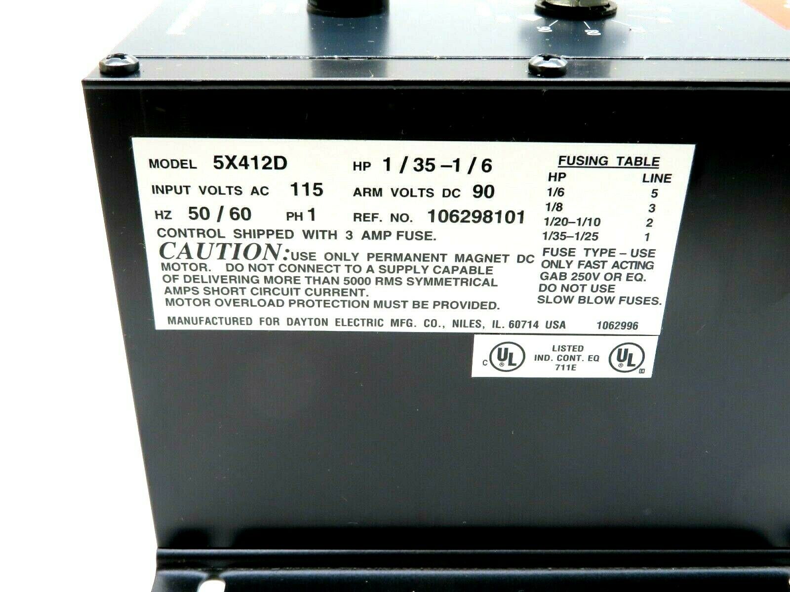 NEW DAYTON 5X412D DC SPEED CONTROL 115V 50/60HZ$175.00 Out of stock SKU: 353381444859 Category: Other Description Additional information Description NEW DAYTON 5X412D DC SPEED CONTROL 115V 50/60HZ1636/BF Additional information Weight 4.00 lbs Power Source DC MPN 5X412D Brand DAYTON Voltage 115 V We Buy New and Used Surplus Inventory - Sell to Us