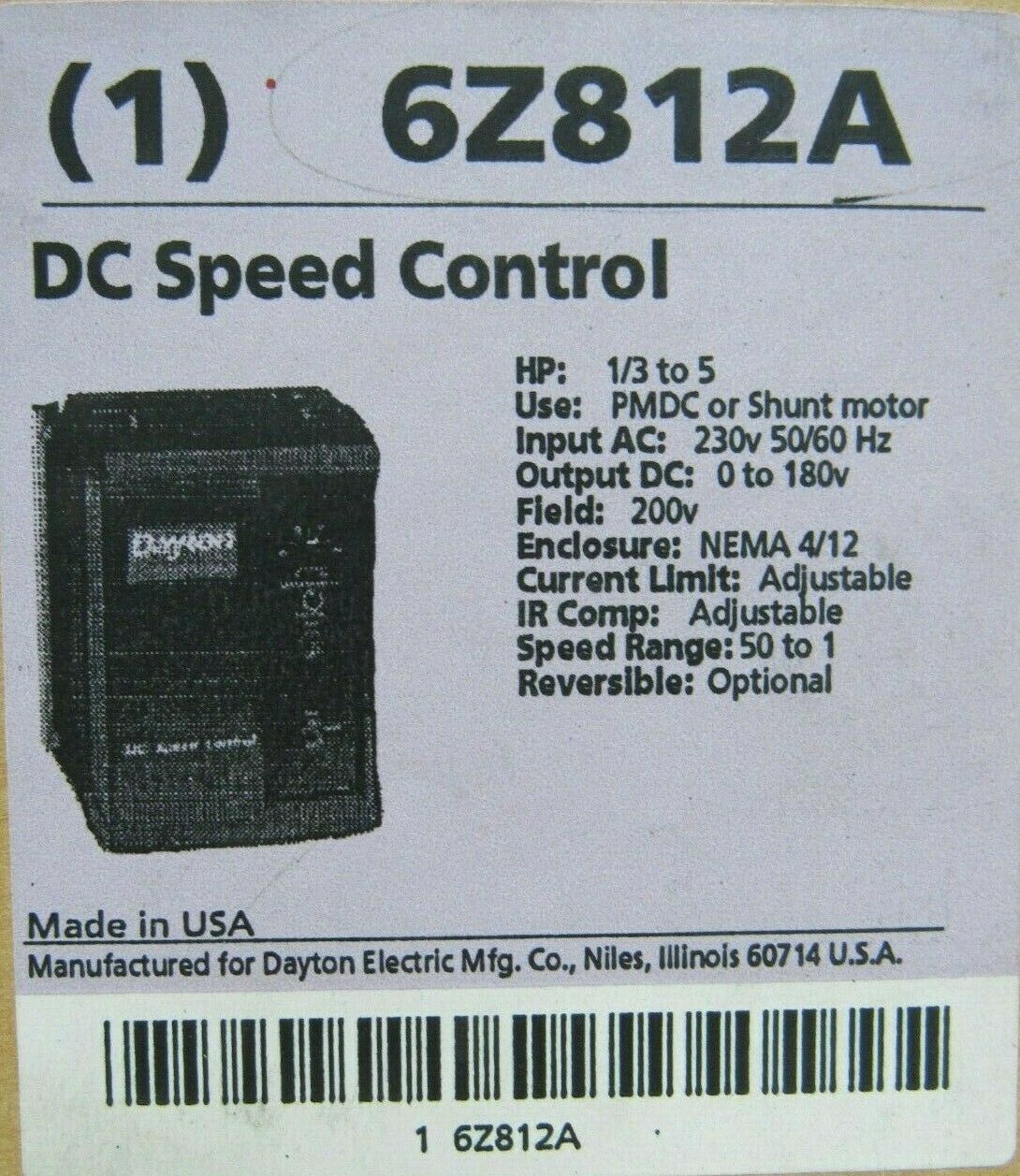 NEW DAYTON 6Z812A DC SPEED CONTROL