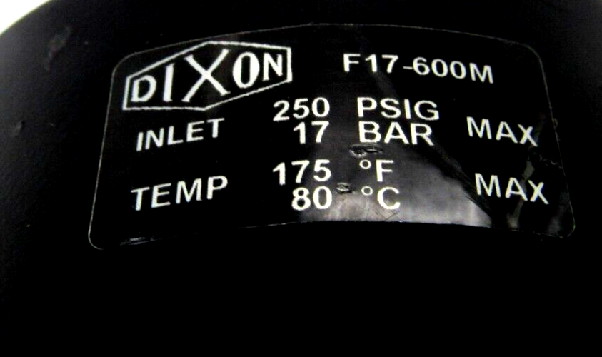 NEW DIXON F17-600M AIRLINE FILTER W/SIGHT GLASS F17600M$200.00 Only 1 left in stock NEW DIXON F17-600M AIRLINE FILTER W/SIGHT GLASS F17600M quantity Add to cart SKU: 354983180439 Category: Other Description Additional information Description NEW DIXON F17-600M AIRLINE FILTER W/SIGHT GLASS F17600MNEW, NO BOX 1365/BF Additional information Weight 4.00 lbs Brand DIXON MPN F17-600M Country/Region of Manufacture Unknown We Buy New and Used Surplus Inventory - Sell to Us