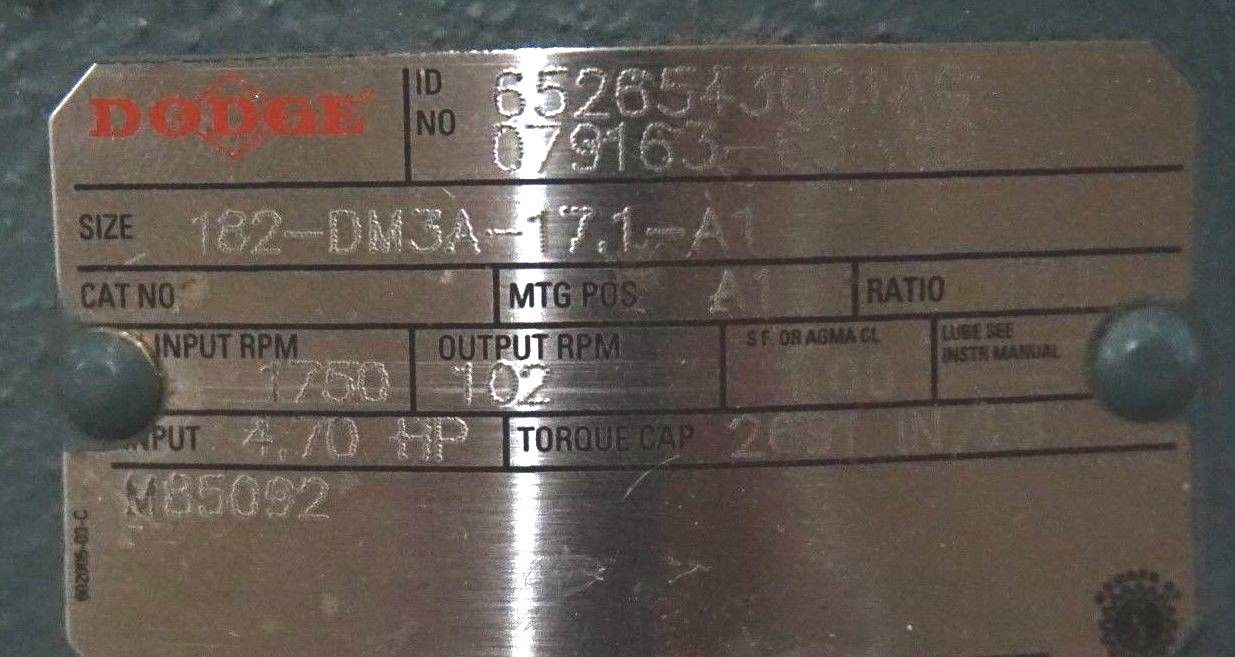 NEW DODGE 182-DM3A-17.1-A1 GEAR REDUCER 1750 RPM, 4.70HP 182DM3A171A1