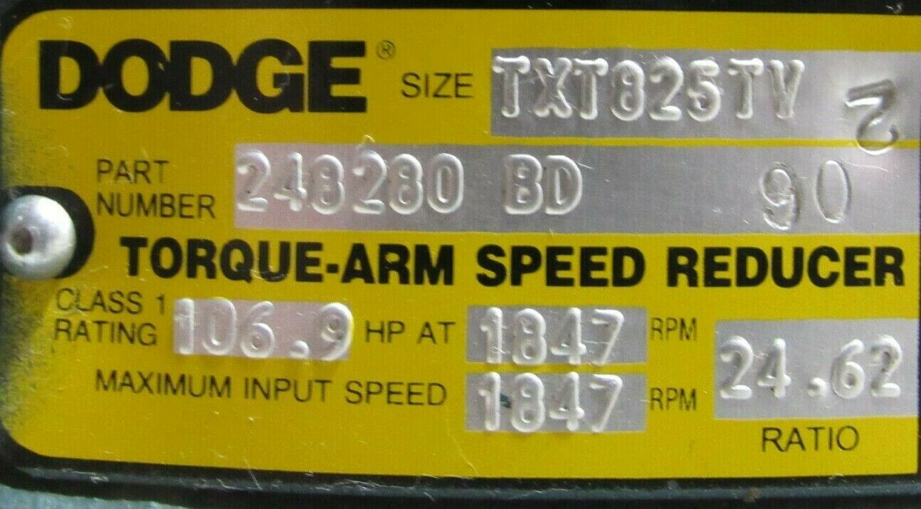 NEW DODGE TXT8 SHAFT MOUNT GEAR REDUCER 24.62:1 248280 BD TXT825TV2-7/16″ SHAFT4-3/4″ BORE