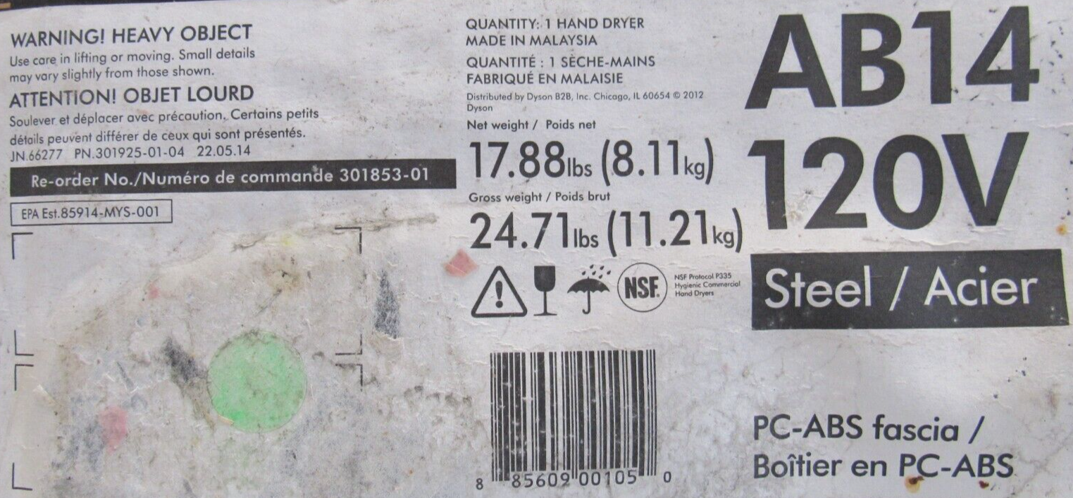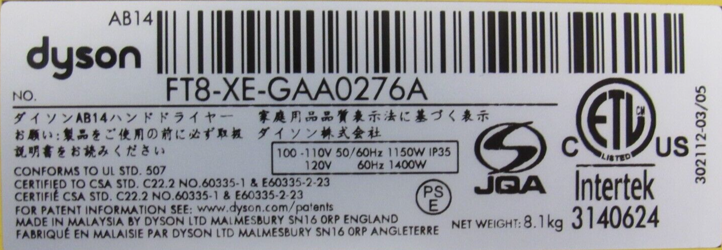 NEW DYSON AB14 AIR BLADE HAND DRYER 120V FT8-XE-GAA0276A