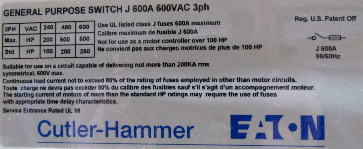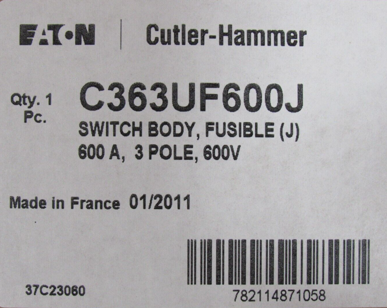 NEW EATON C363UF600J SWITCH BODY 600A 3-POLE 600V