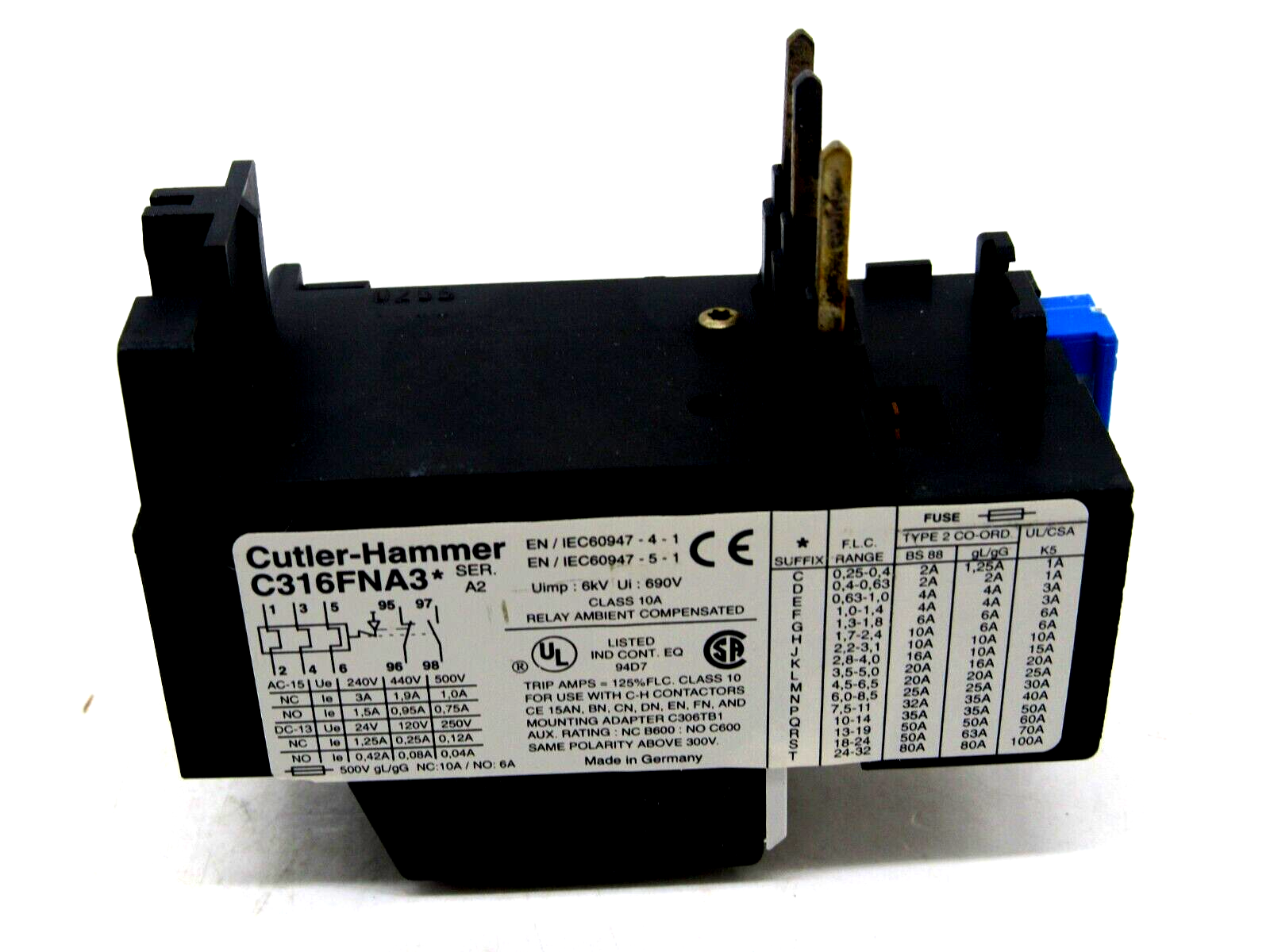 NEW EATON CUTLER HAMMER C316FNA3P THERMAL OVERLOAD RELAY SERIES A2 C316FNA3