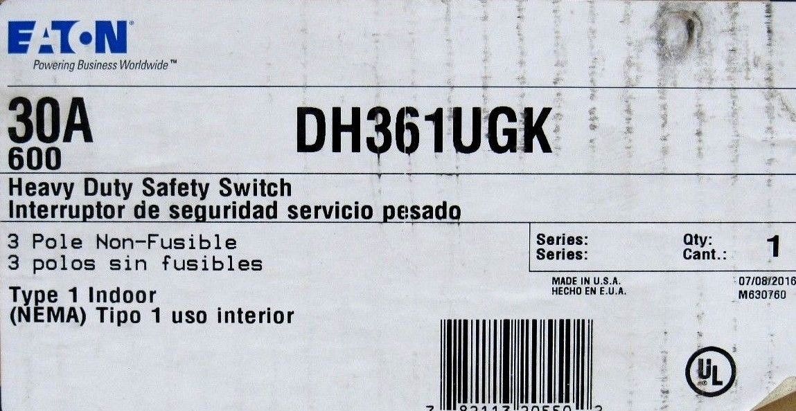 NEW EATON DH361UGK SAFETY SWITCH 30A 600V