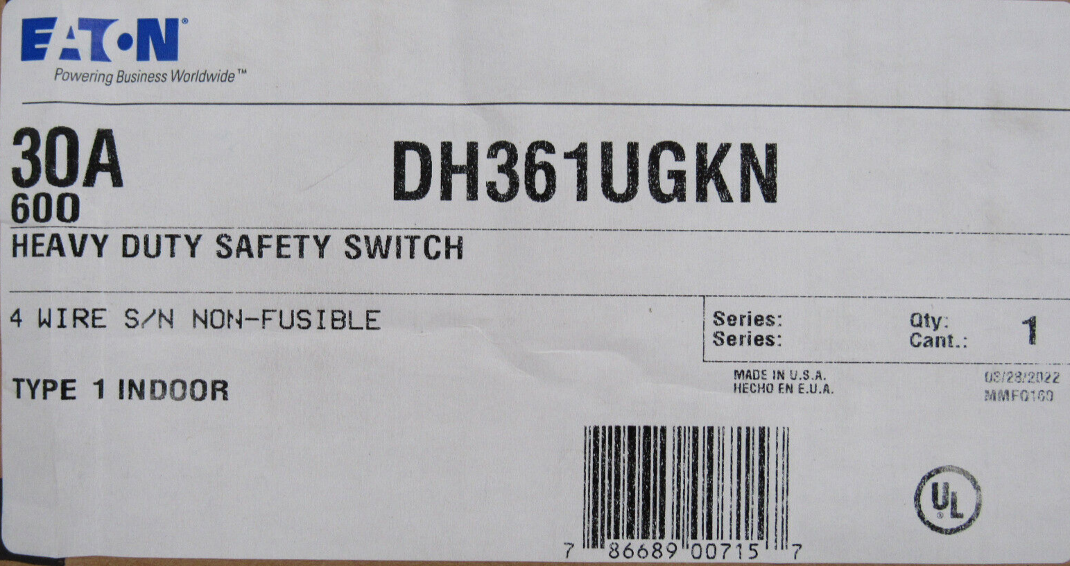 NEW EATON DH361UGKN SAFETY SWITCH 30A 600V$65.00 Out of stock SKU: 355243399493 Category: Other Description Additional information Description NEW EATON DH361UGKN SAFETY SWITCH 30A 600V B3/204 BB Additional information Weight 14.00 lbs Brand EATON MPN DH361UGKN We Buy New and Used Surplus Inventory - Sell to Us