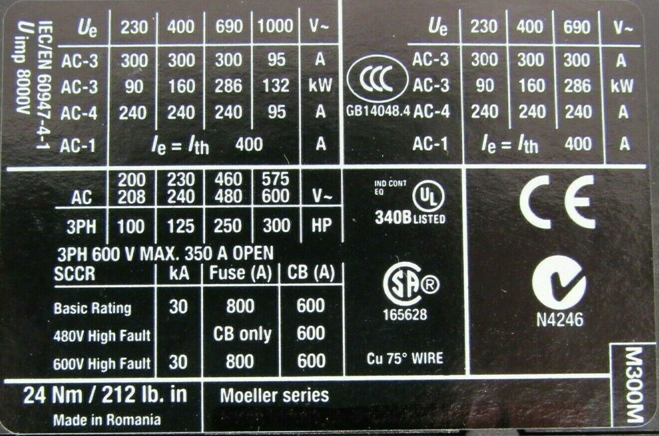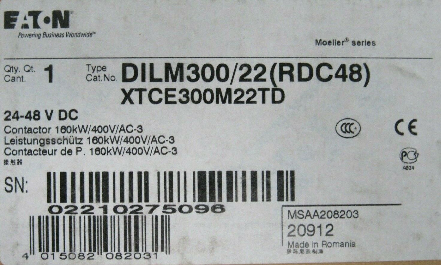 NEW EATON XTCE300M22TD CONTACTOR DILM300/22(RDC48)