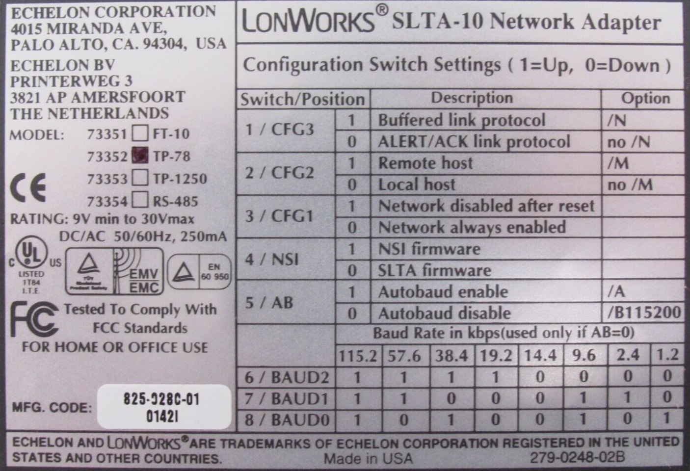 NEW ECHELON SLTA-10 NETWORK ADAPTER 73352 TP-78 SLTA10$400.00 Out of stock SKU: 195817800605 Category: Other Description Additional information Description NEW ECHELON SLTA-10 NETWORK ADAPTER 73352 TP-78 SLTA10 2086 BB Additional information Weight 2.00 lbs Brand ECHELON MPN SLTA-10 We Buy New and Used Surplus Inventory - Sell to Us