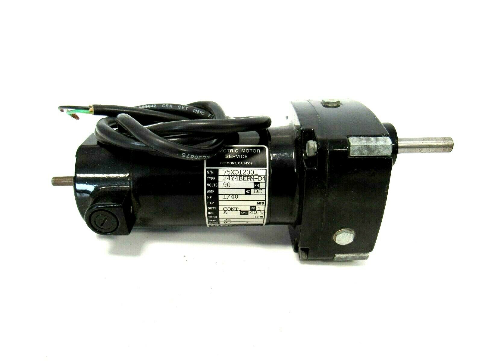 NEW ELECTRIC MOTOR SERVICE 24Y4BEPM-D4 GEARMOTOR 90VDC 1/40HP 90:1 24Y4BEPMD4