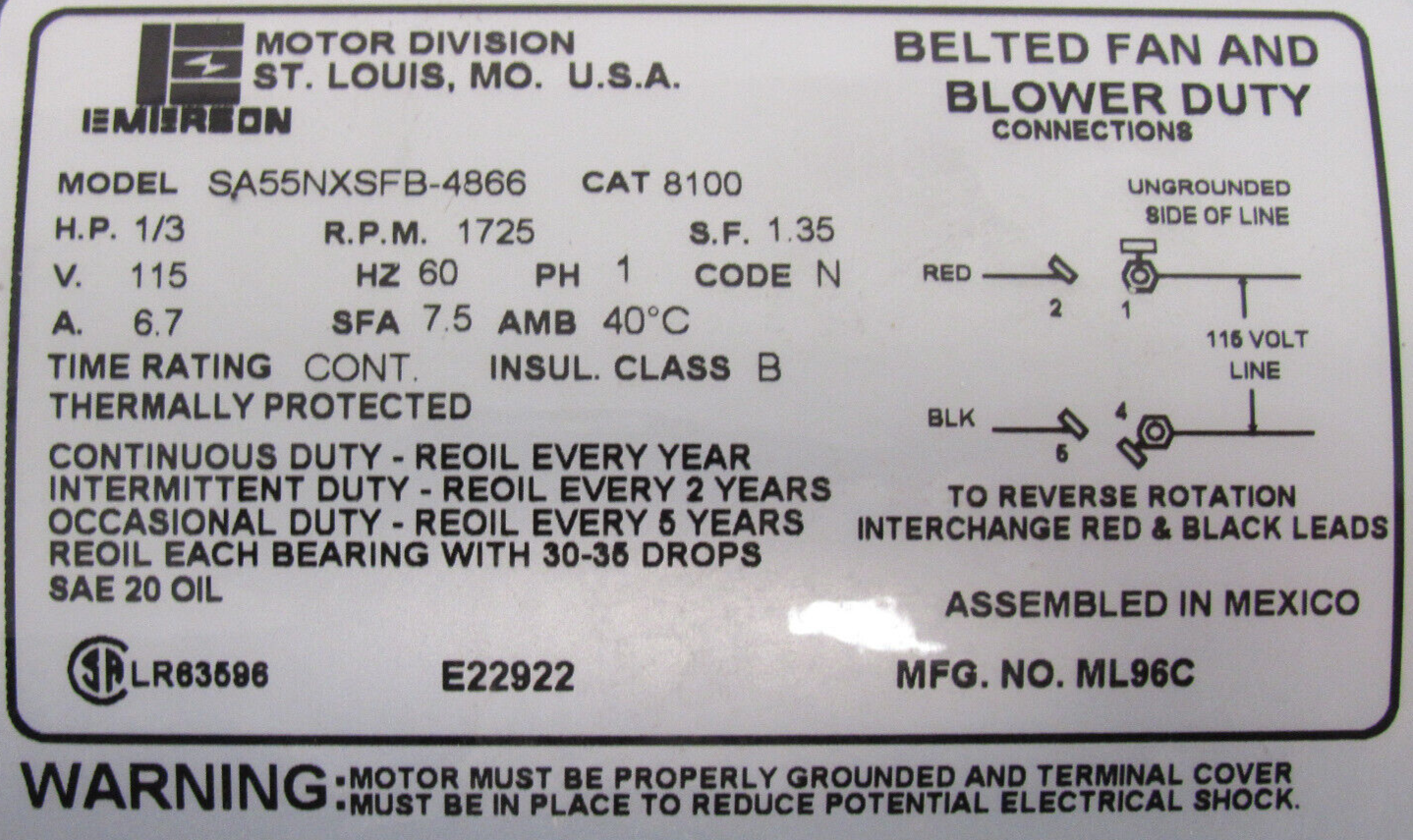 NEW EMERSON 8100 FAN MOTOR 1/3HP 115V 1/2" DIA. SA55NXSFB-4866$135.00 Out of stock SKU: 354971772015 Category: Other Description Additional information Description NEW EMERSON 8100 FAN MOTOR 1/3HP 115V 1/2″ DIA. SA55NXSFB-4866NEW, NO BOX B3/157 BB Additional information Weight 13.00 lbs Brand EMERSON MPN 8100 We Buy New and Used Surplus Inventory - Sell to Us