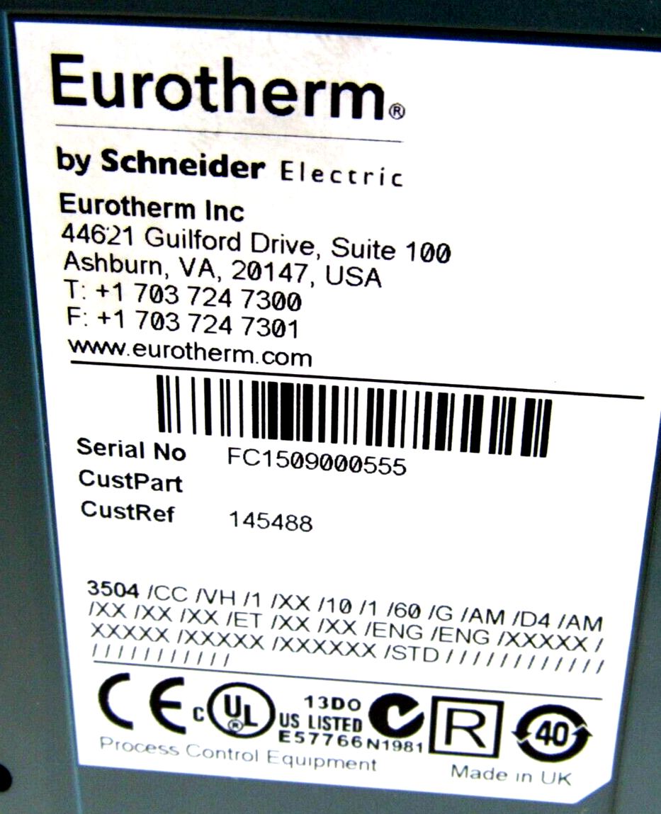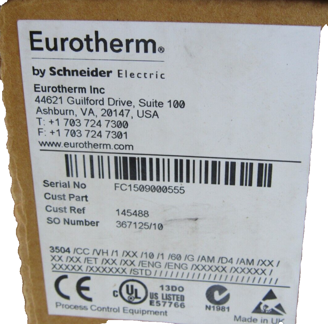 NEW EUROTHERM 3504/CC/VH/1/XX/10/1/60/G/AM/D4/AM/XX/XX/XX/ET/XX/XX/ENG/ENG