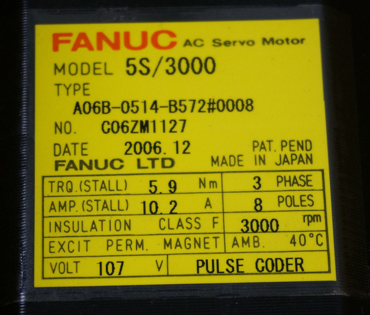 NEW FANUC A06B-0514-B572#0008 SERVO MOTOR A06B-0514-B572