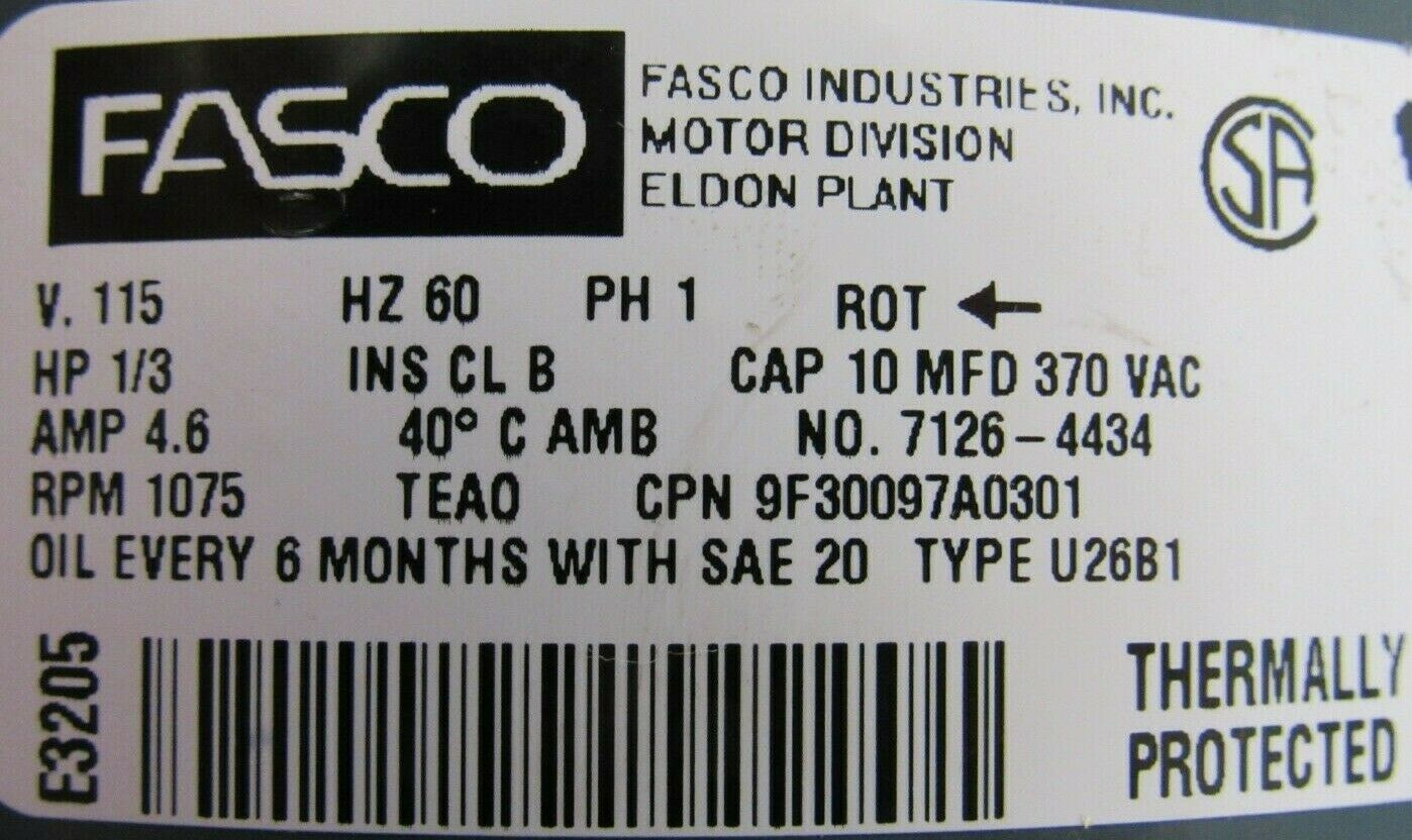 NEW FASCO E3205 MOTOR 1/3HP 115V 9F30097A0301 1/2" DIA.