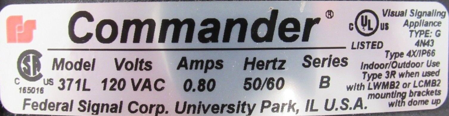 NEW FEDERAL SIGNAL 371L-120R ROTATING LIGHT RED 120VAC SER.B 371L120R