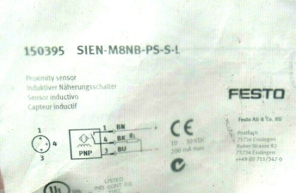 NEW FESTO SIEN-M8NB-PS-S-L PROXIMITY SENSOR 150395 SIENM8NBPSSL