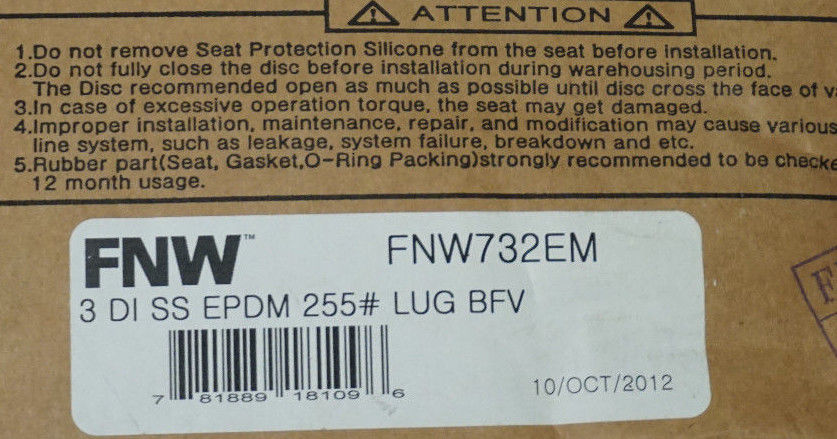 NEW FNW FNW732EM BUTTERFLY VALVE