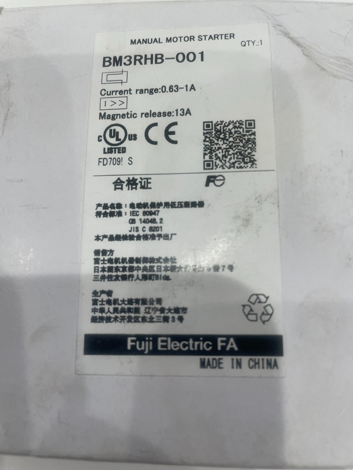 NEW FUJI ELECTRIC BM3RHB-001 STARTER 0.63.1 AMP BM3RHB001