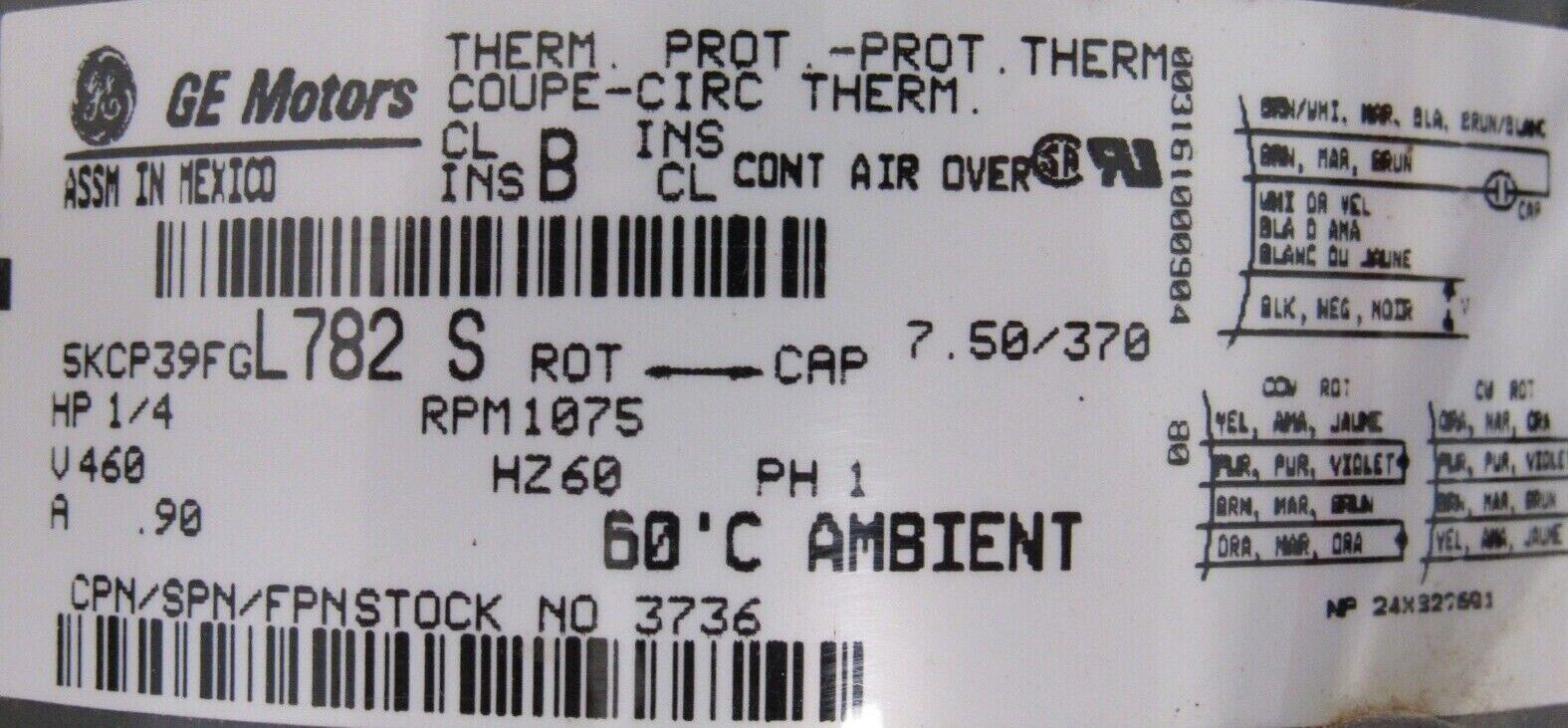 NEW GE 5KCP39FGL782S ELECTRIC MOTOR 1/4HP 460V 1075RPM 6"x12" 3736