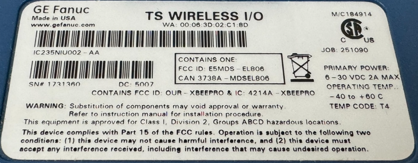 NEW GE FANUC IC235NIU002-AA TS WIRELESS I/O NIU ANALOG DISCRETE I/O IC235NIU002