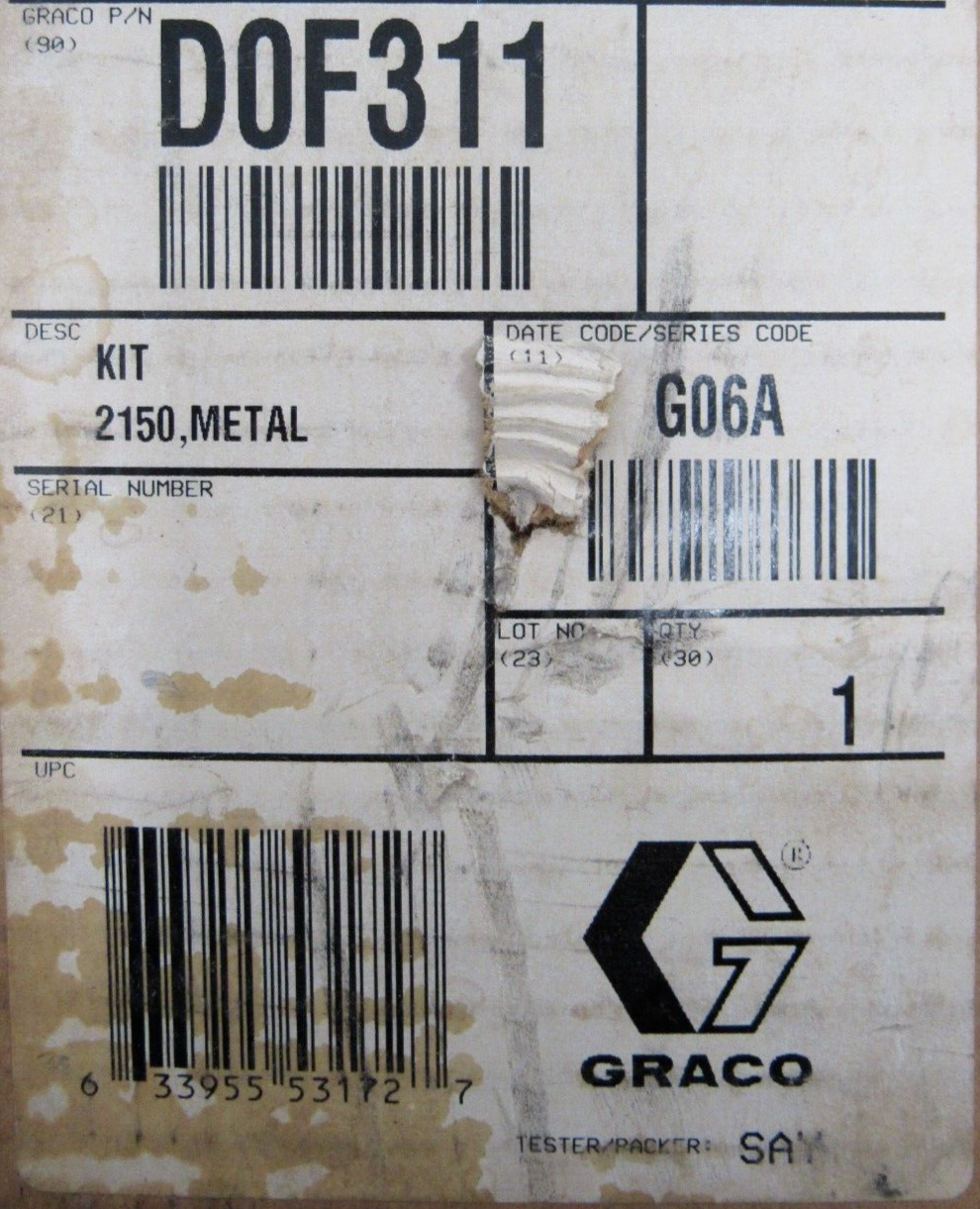 NEW GRACO D0F311 DIAPHRAGM REPAIR KIT 2150$850.00 Out of stock SKU: 195779900712 Category: Other Description Additional information Description NEW GRACO D0F311 DIAPHRAGM REPAIR KIT 2150MISSING 1 BALL B3/159 BB Additional information Weight 8.00 lbs Brand GRACO MPN D0F311 We Buy New and Used Surplus Inventory - Sell to Us