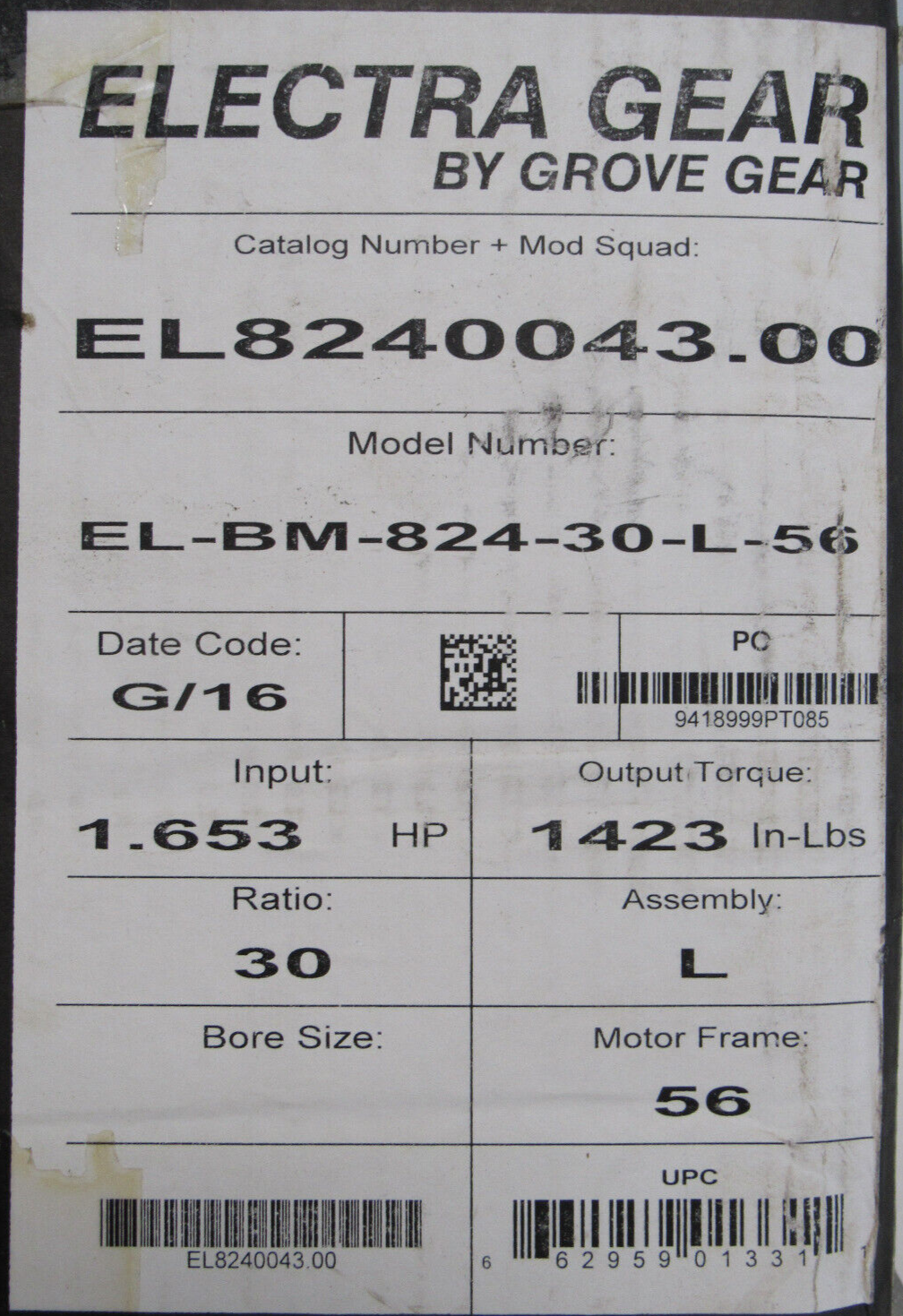 NEW GROVE GEAR EL-BM-824-30-L-56 ALUMINUM WORM GEAR REDUCER 30:1 EL8240043.00.