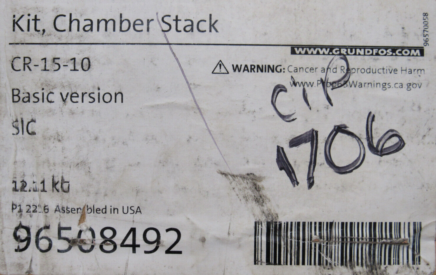 NEW GRUNDFOS 96508492 CHAMBER STACK KIT CR15-10$850.00 Out of stock SKU: 355825365142 Category: Other Description Additional information Description NEW GRUNDFOS 96508492 CHAMBER STACK KIT CR15-10 B2/11 BB Additional information Weight 24.00 lbs Brand GRUNDFOS MPN 96508492 We Buy New and Used Surplus Inventory - Sell to Us