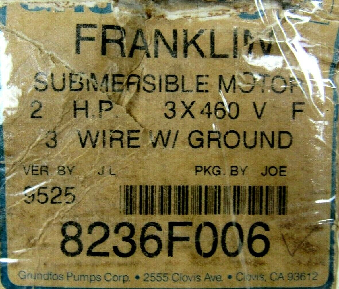 NEW GRUNDFOS FRANKLIN 8236F006 SUBMERSABLE MOTOR 2HP 3 WIRE 460V 8236F006