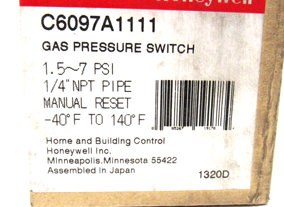 NEW HONEYWELL C6097A1111 GAS PRESSURE SWITCH$180.00 Out of stock SKU: 175508846161 Category: Other Description Additional information Description NEW HONEYWELL C6097A1111 GAS PRESSURE SWITCH 1511 RB Additional information Weight 1.00 lbs Brand HONEYWELL Model N/A Fuse Type Switch MPN C6097A1111 Country/Region of Manufacture Japan We Buy New and Used Surplus Inventory - Sell to Us