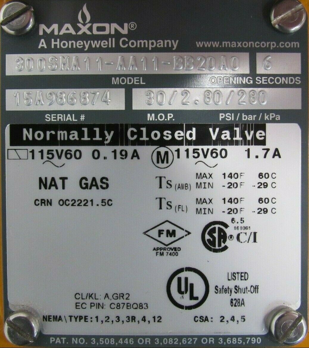 NEW HONEYWELL MAXON 300SMA11-AA11-BB20A0 NAT GAS VALVE 3″ 300SMA11AA11BB20A0NEW, NO BOX