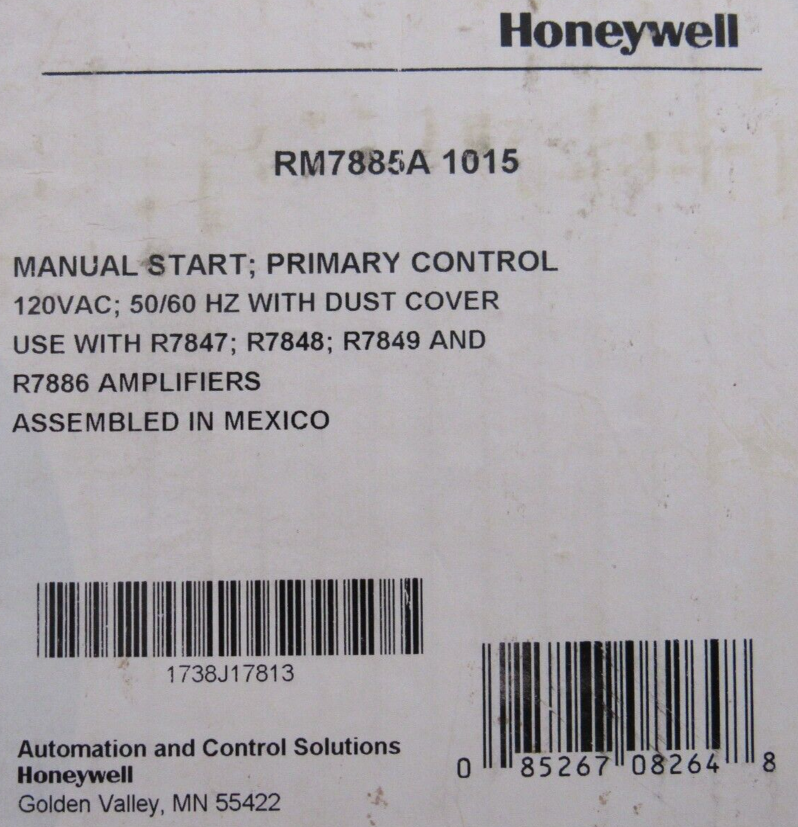 NEW HONEYWELL RM7885A-1015 BURNER CONTROL R7847-A-1033 RM7885A1015