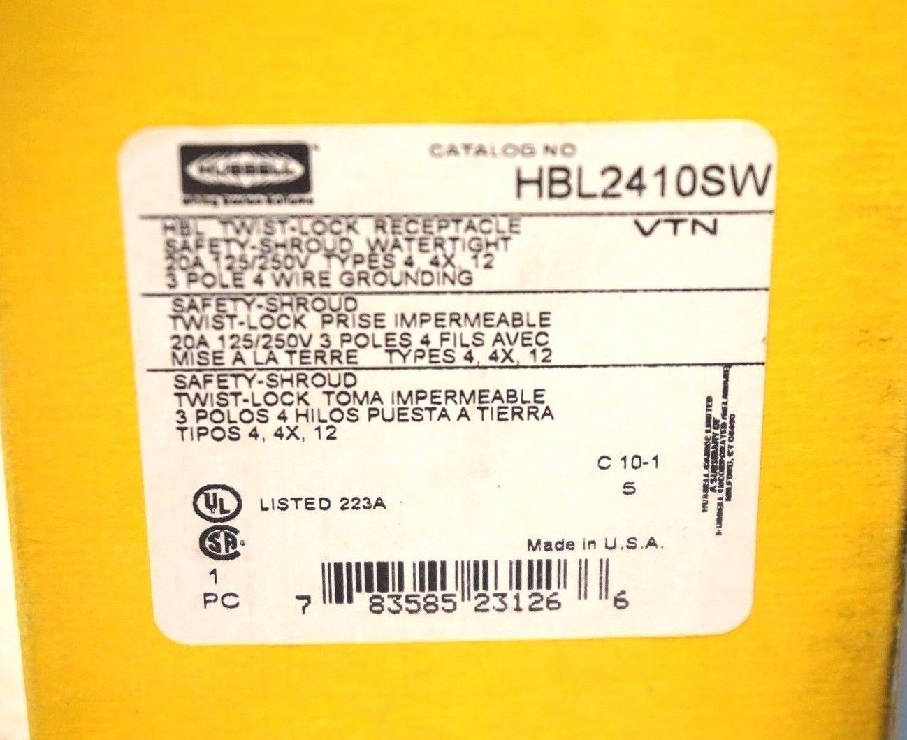 NEW HUBBELL HBL2410SW TWIST LOCK RECEPTACLE (MAY NOT COME IN ORIGINAL BOX)