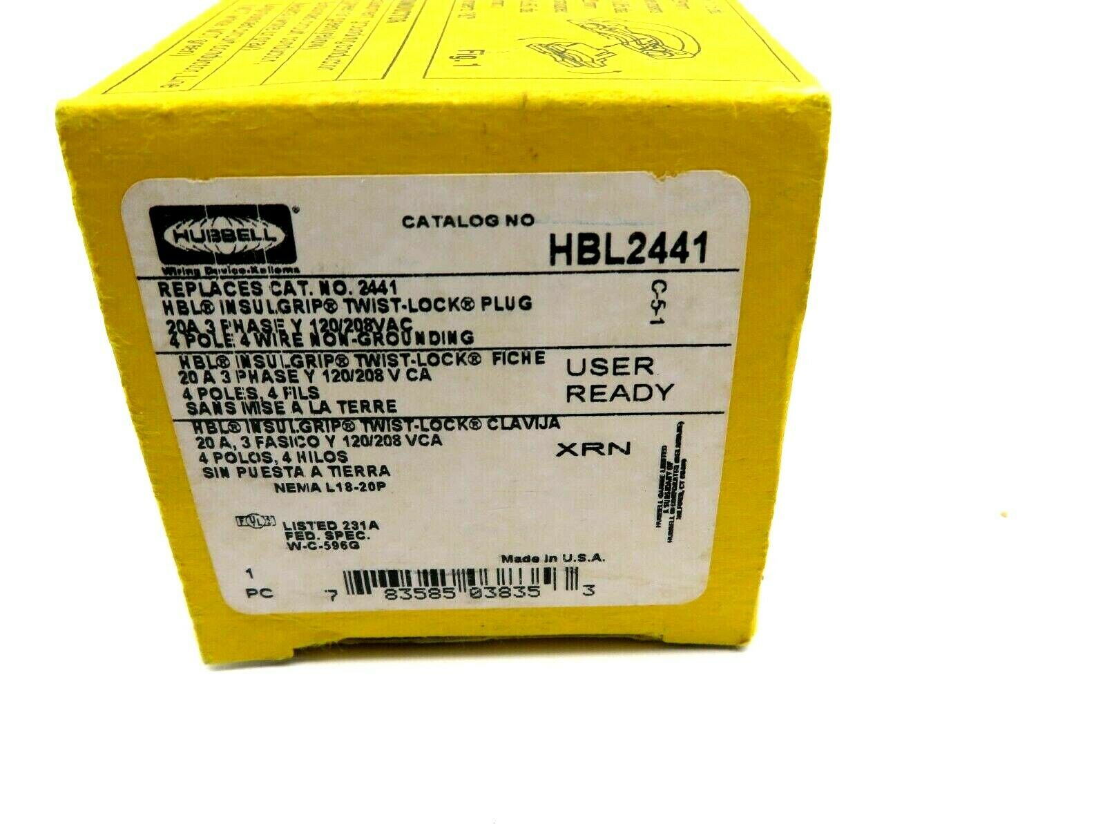 NEW HUBBELL HBL2441 PLUG 20AMP 4POLE 120/208VAC