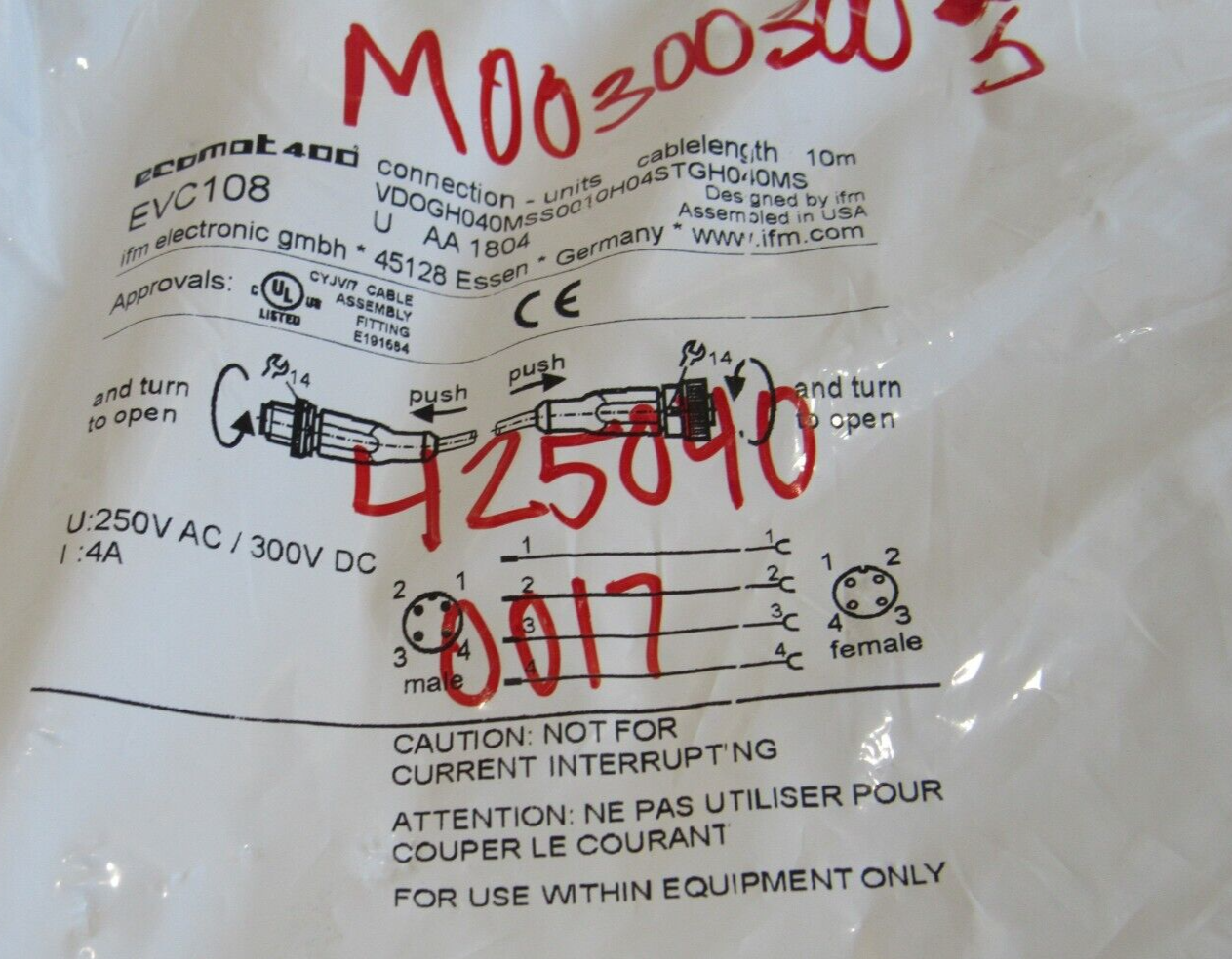 NEW IFM EFECTOR EVC108 CONNECTION CABLE VDOGH040MSS0010H04STGH040MS