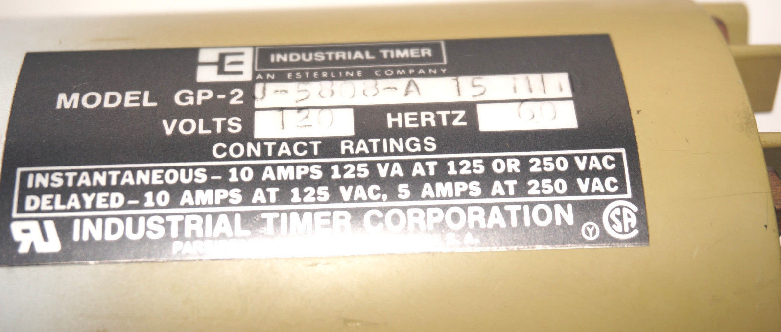 NEW INDUSTRIAL TIMER CO. GP-2 TIMER GP-2J-5808-A 120V 60 HZ. GP2 NEW, OLD STOCK, NO BOX