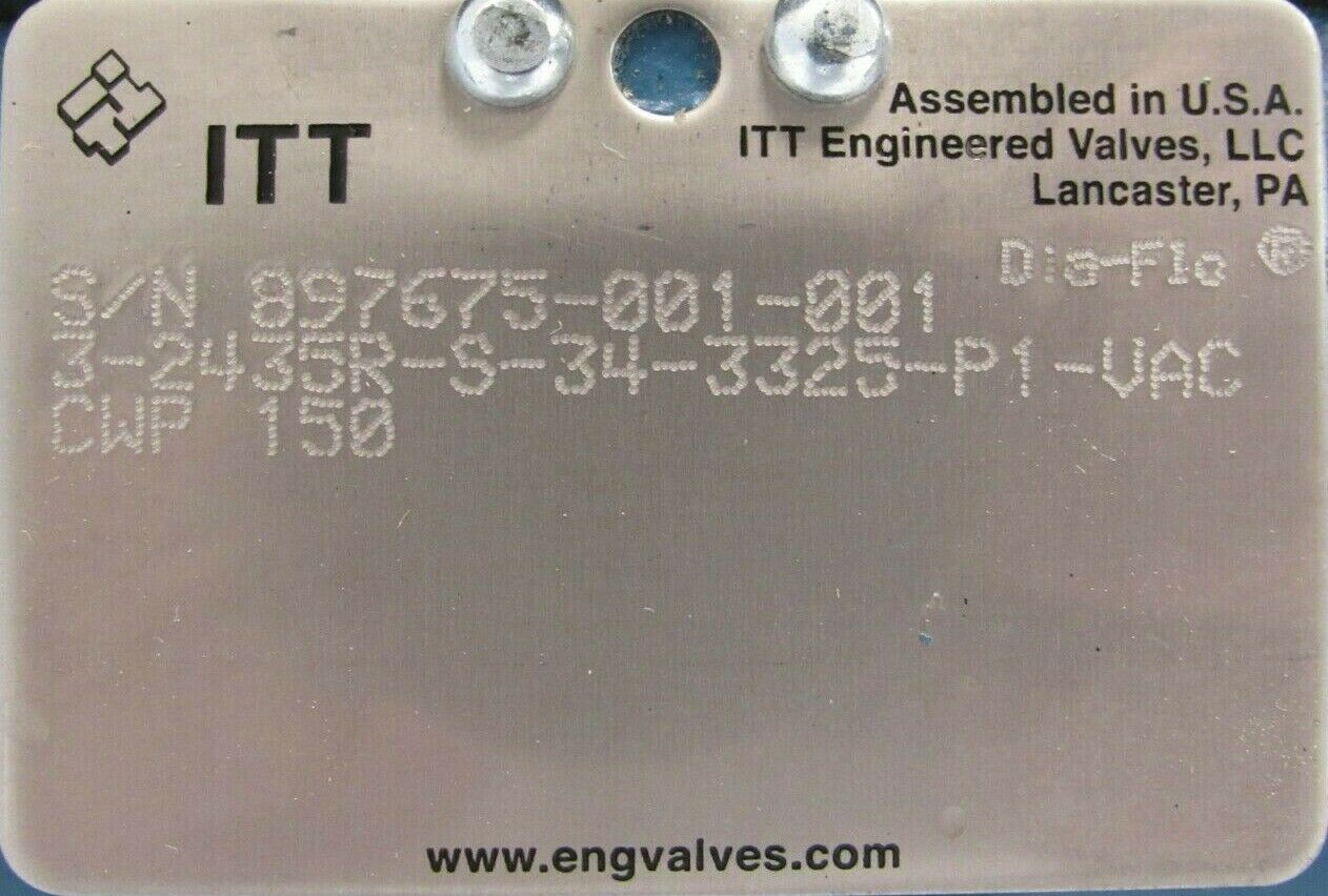 NEW ITT 3-2435R-S-34-3325-P1-VAC DIAPHRAGM VALVE 32435RS343325P1VACNEW, NO BOX
